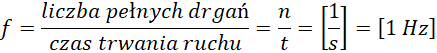 o Częstotliwość drgań (f) – jest odwrotnością okresu, to liczba pełnych drgań wykonana w czasie 1 sekundy, wyrażana w Hz (1 Hz = 1/1s).