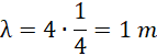 Okres fali jest równy 0,25 sekundy, a jej długość wynosi 1 metr.