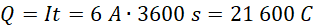 Ładunek, jaki przepłynął w tym czasie przez obwód elektryczny, to C. 21 600 C.