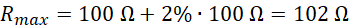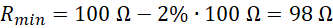 Oblicz zakres, w jakim pracuje opornik o oporze elektrycznym 100 Ω, uwzględniając tolerancję 2%.