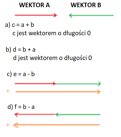Dodawać wektory można, tworząc nowy wektor poprzez umieszczenie początku jednego wektora w końcu drugiego, natomiast odejmowanie wektorów jest dodawaniem wektora odwrotnego.