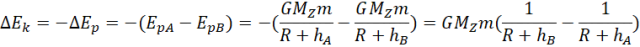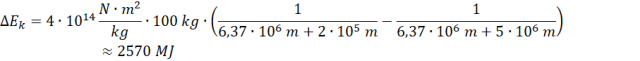 Oblicz zmianę energii kinetycznej ciała o masie 100 kg, które zbliża się do powierzchni Ziemi z odległości do odległości .