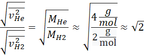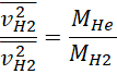 Na podstawie danych zawartych w treści zadania zapisz związek pomiędzy średnimi szybkościami ruchu postępowego cząstek wodoru i helu.