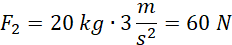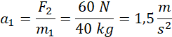 Z trzeciej zasady dynamiki wiadomo, iż siły działające w układzie będą miały te same wartości. Posłuż się drugą zasadą dynamiki w postaci