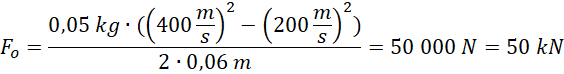 Zapisz zasadę zachowania energii mechanicznej. Początkowa energia kinetyczna pocisku jest równa energii kinetycznej po przejściu przez deskę i pracy, jaką wykonały siły oporu w desce. Praca siły oporu jest wyrażona jako iloczyn siły oporu i drogi pocisku.