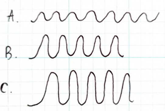 Najwyższy dźwięk przedstawiono na wykresieA, a najniższy na wykresie C.