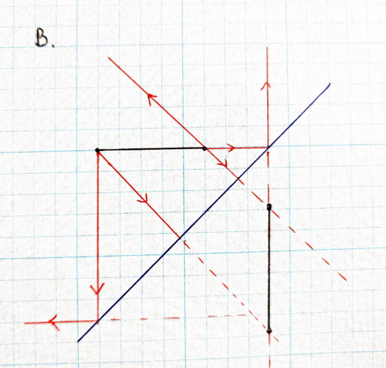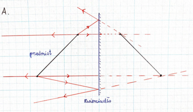 W tym zadaniu dokończ rysowanie obrazów w zwierciadłach płaskich.