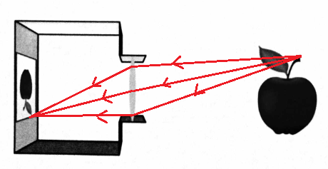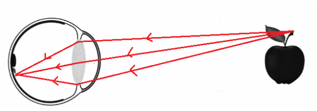 Obraz jabłka na siatkówce jest pomniejszony i odwrócony.