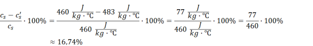 Wyznaczona doświadczalnie wartość ciepła właściwego jest o ok. 16,74% mniejsza od wartości tablicowej.