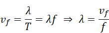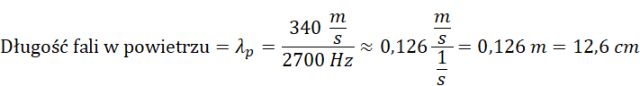, gdzie vf – prędkość fali, f – częstotliwość drgań fali. Prędkości dźwięku w powietrzu i w wodzie odczytaj z tablic fizycznych.