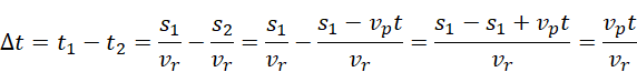Zauważ, że zadanie jest analogią do efektu Dopplera. Źródło fali (piesza grupa) wytwarza fale (rowerzystów) o pewnej częstotliwości (częstość wyjazdów). Fale (rowerzyści) docierają do odbiorcy (celu podróży) w coraz krótszych odstępach czasu – zauważyć można zwiększoną częstotliwość.