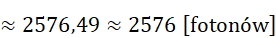 Wyznacz ilość emitowanych fotonów (n), wiedząc, że energia wyemitowana w jądrze Słońca (E) jest wielokrotnością energii fotonów (Ef) światła widzialnego. Z tablic fizycznych odczytaj prędkość światła (c) oraz stałą Plancka (h). Do obliczeń wykorzystaj długość fali przypadającej (λ) dla maksymalnego promieniowania Słońca (na stronie 201).