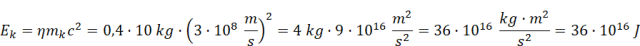 Wyznacz energię spoczynkową kubełka, korzystając ze wzoru
