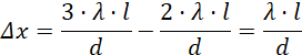 Oblicz odległość między drugim, a trzecim prążkiem:
