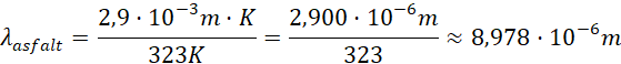 Stąd, długość fali odpowiadająca największej mocy promieniowania wytwarzanego przez asfalt będzie: