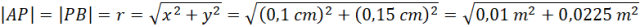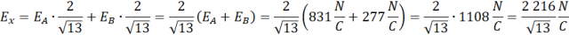 Wyznacz wartość oraz odchylenie wypadkowego wektora natężenia pola w punkcie P.