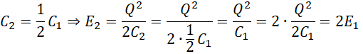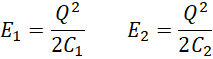 Użyj powyższej zależności do wyliczenia zależności między energiami kondensatora przed i po rozchyleniu okładek, czyli między E1 i E2.
