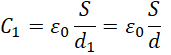 – przenikalność elektryczna próżni, S – powierzchnia płytek kondensatora, d – odległość między blaszkami kondensatora.