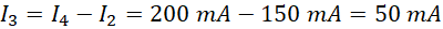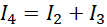 Pierwsze prawa Kirchhoffa mówi, że suma natężeń wypływająca z węzła (rozgałęzienia przewodu) jest równa sumie natężeń wpływających do węzła. Do węzła z którego wypływa I4 wpadają natężenia I2 i I3, stąd