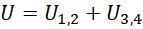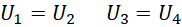 Oporniki 1,2 są połączone szeregowo, tak samo jak oporniki 3 i 4, czyli przez każdy z nich przepływa prąd o takim samym napięciu i natężeniu. Suma napięć, jak i natężeń, z układów 1,2 i 3,4 jest równy całkowitemu napięciu i natężeniu przepływającego przez obwód.