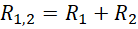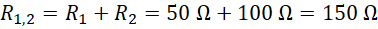 Oporniki 1 i 2 są połączone szeregowo, więc ich opór zastępczy jest równy sumie ich oporów.