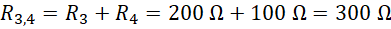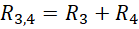 Oporniki 3 i 4 są połączone szeregowo, więc ich opór zastępczy jest równy sumie ich oporów.