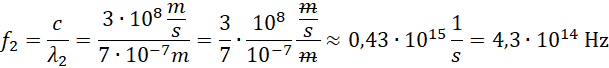 Częstotliwość fal rejestrowanych przez oczy człowieka mieści się w przedziale od 4,3∙1014 Hz do 7,5∙1014 Hz