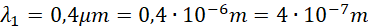 Oblicz częstotliwość dla skrajnych długości fal widzianych przez oczy człowieka.