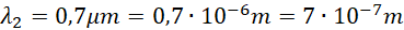 Z treści w rozdziale odczytaj, że długość fali rejestrowanych przez oczy człowieka zawiera się w przedziale od 0,4μm do 0,7μm.