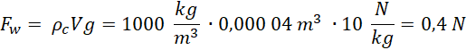 Wskazanie siłomierza po zanurzeniu ciała w wodzie to różnica pomiędzy ciężarem ciała i siłą wyporu. Siłę wyporu policzysz ze wzoru: