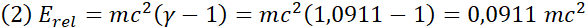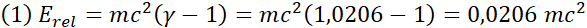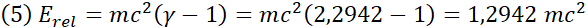 | 0,9c | 0,405 | 2,2942 | 1,2942 | |