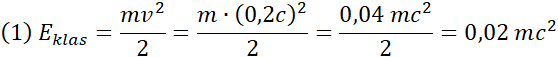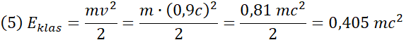 Wykorzystaj wzory na energię kinetyczną w podejściu klasycznym i relatywistycznym. Wstaw dane liczbowe odczytane z tabeli i wykonaj obliczenia. Na koniec wstaw zapisz wyniki w tabeli.