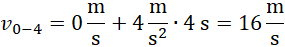 Początkowa prędkość wynosiła 0 . Z wykresu możesz odczytać, że przez kolejne 4 sekundy samochód jechał z przyspieszeniem. Oblicz zatem, jaka była prędkość samochodu po 4 sekundach. Następne 8 sekund hamował. Znów oblicz, jaką miał prędkość po kolejnych 8 sekundach, czyli w 12 sekundzie trwania ruchu.