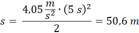 Wykorzystujemy przyspieszenie obliczone w zadaniu 2.1. oraz wzór na drogę w ruchu jednostajnie przyspieszonym bez prędkości początkowej.