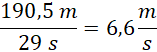 Sportowiec pokonał 190,5 metra w czasie 29 sekund, zatem jego prędkość średnia wynosi: