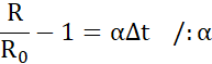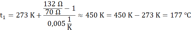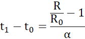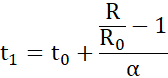 R1 – opór elektryczny po zmianie temperatury [Ω],