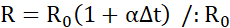 R – opór elektryczny przed zmianą temperatury [Ω],