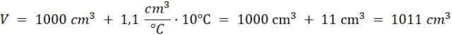 Objętość początkowa cieczy wynosi: V0 = 1 dm3 = 1000 cm3