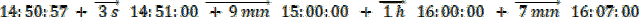3 s + 9 min + 1 h + 7 min + 3 s = 6 s + 16 min + 1 h = 6 s + 16 ∙ 60 s + 1 ∙ 3600 s = 6 s + 960 s + 3600 s =
