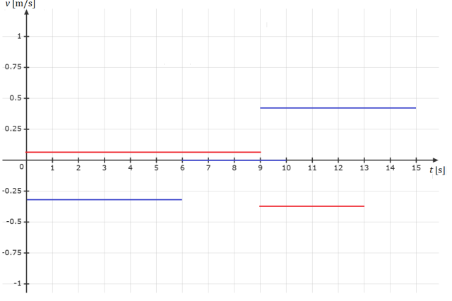 Oblicz sobie każdą prędkość, jaką osiągały oba pojazdy. Zmiana prędkości to zmiana nachylenia prostej. Następnie wykorzystaj te obliczenia do narysowania wykresu.