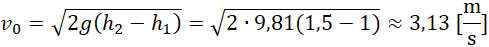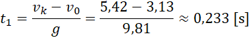 W tym zadaniu podziel sobie wyznaczony czas na dwa etapy: pierwszy, w którym piłeczka zostaje rzucona na stół z wysokości 1 m oraz drugi, kiedy piłeczka odbija się od stołu i wznosi się na wysokość 1,5 m. W każdym z tych etapów wyznacz sobie wzory na prędkość końcową, które możesz następnie do siebie przyrównać.