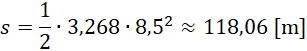Najpierw zamień jednostkę prędkości na jednostkę układu SI. Następnie obliczasz przyspieszenie oraz drogę, jaką pokonał samochód.