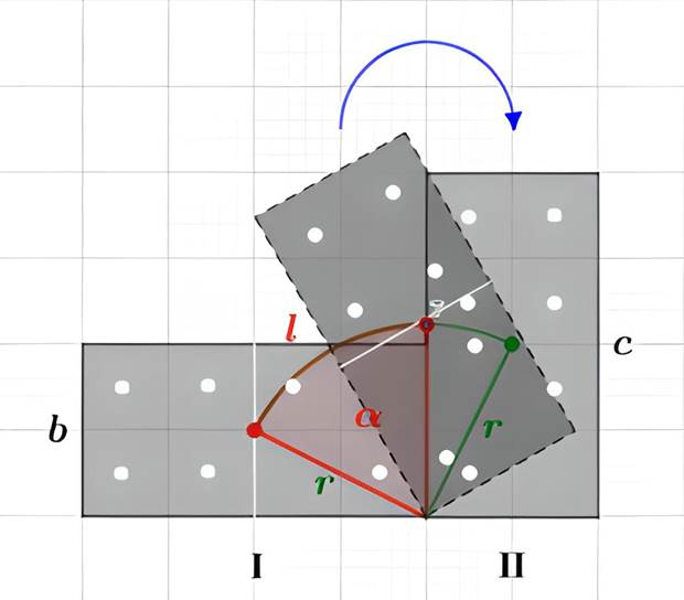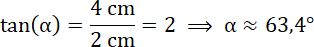 , korzystając z twierdzenia Pitagorasa. Miarę zakreślonego kąta