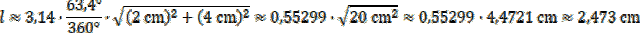 , podstawiając wyznaczoną wartość promienia oraz miarę kąta.