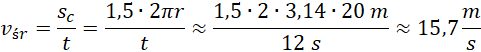 Oblicz wartość średniej prędkości oraz szybkość średnią rowerzysty, który wykonał półtora okrążenia na torze w kształcie okręgu o promieniu 20 m w czasie 12 s.