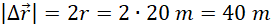 Przemieszczenie jest równe średnicy okręgu, ponieważ punkt końcowy drogi znajduje się po przeciwnej stronie punktu startowego. Szybkość średnią obliczamy, dzieląc całkowitą drogę przez czas. Aby obliczyć średnią wartość prędkości, dzielimy długość wektora przemieszczenia przez czas.