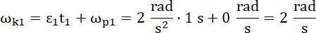 Wyznaczmy końcowe szybkości kątowe w każdym z przedziałów czasu: