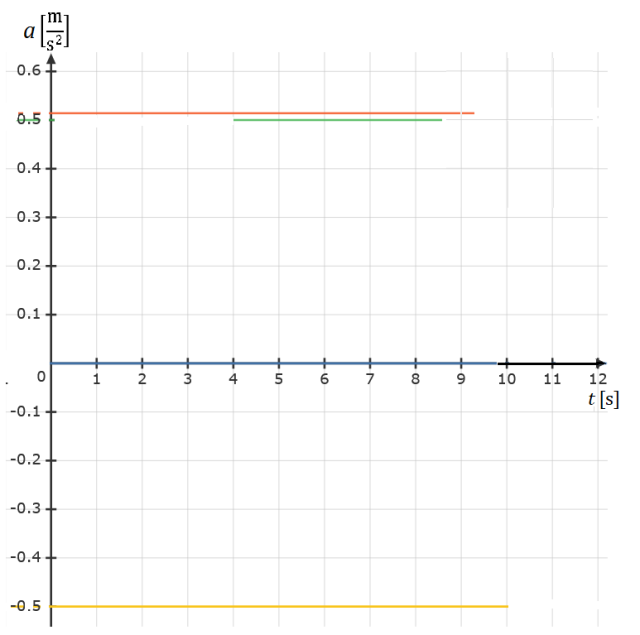Wyznacz sobie najpierw, jakie przyspieszenie osiągnęło każde z ciał. Sprawdź, jaki był przyrost prędkości w określonym przedziale czasu. Następnie zilustruj te wartości na wykresie.
