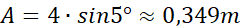 Korzystając z funkcji trygonometrycznych i dostępnych w treści zadania danych, obliczamy szukaną amplitudę.