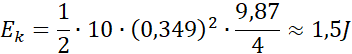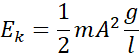 W momencie przejścia przez położenie równowagi prędkość osiąga swoją maksymalną prędkość, korzystając z tego oraz wzorów na prędkość kontową zależną od przyspieszenia ziemskiego oraz długości wahadła, obliczamy wartość tej energii.